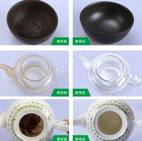 使用方法:給茶壺注滿水,倒入適量茶垢劑,攪拌至產品充分溶解再加熱沸騰20-30分鐘即可